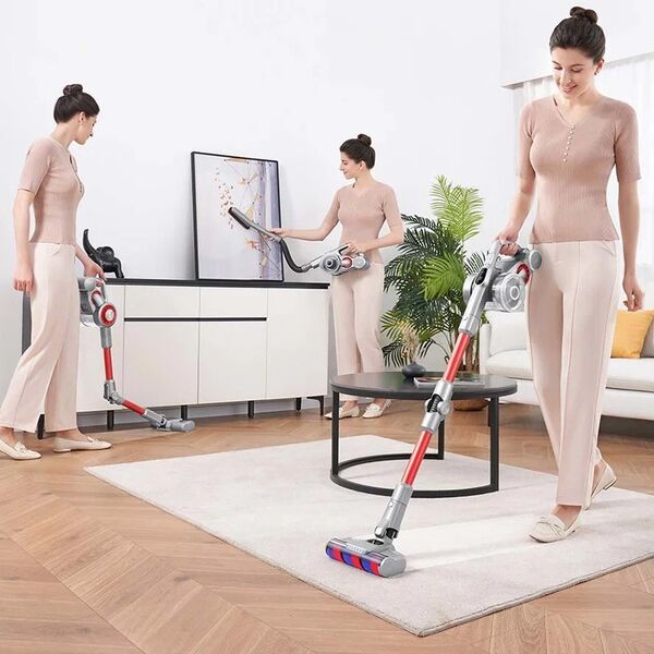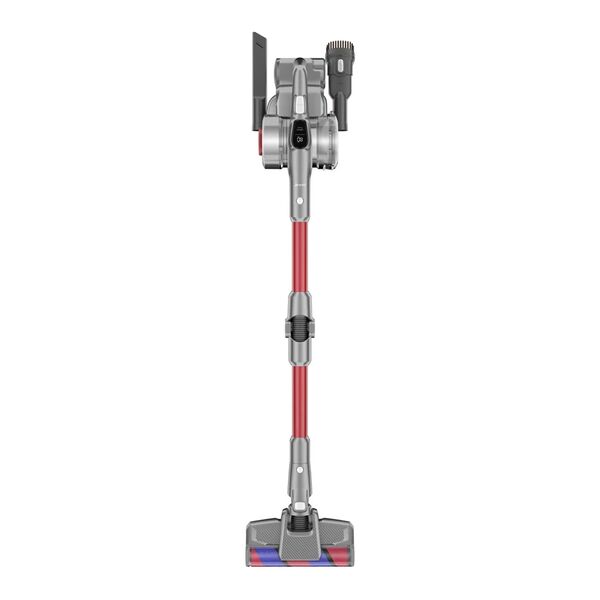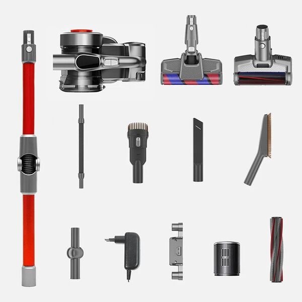 Бесщеточный двигатель с цифровым управлением обеспечивает мощность всасывания 200 Вт. Преимуществом пылесоса является умный датчик пыли, позволяющий менять мощность в зависимости от загрязнения поверхности. Гибкая металлическая трубка поворачивается на 90° вверх и вниз. Технология двойного горизонтального циклона эффективно отделяет пыль от воздуха и снижает потери на всасывании. Может улавливать крупные частицы и до 99,99 % мелкой пыли, избегая при этом вторичного загрязнения воздуха. Светодиодный экран показывает оставшееся время использования, режим очистки, концентрацию пыли и напоминание о неисправности. В автоматическом режиме пылесос может регулировать правильный уровень всасывания для более эффективной уборки и увеличения времени работы в соответствии с изменениями концентрации пыли. Насадки: электрощетка с подсветкой, электрощетка для мягкой мебели, насадка для обивки, щелевая насадка, мягкая щетка. Пылесборник объемом 600 мл.