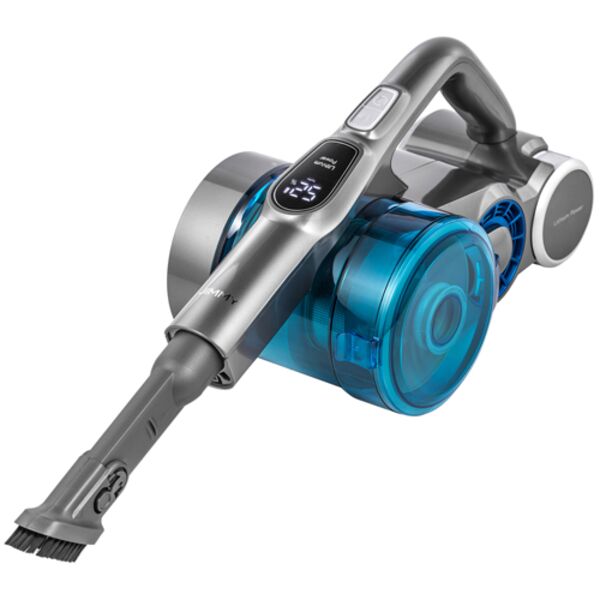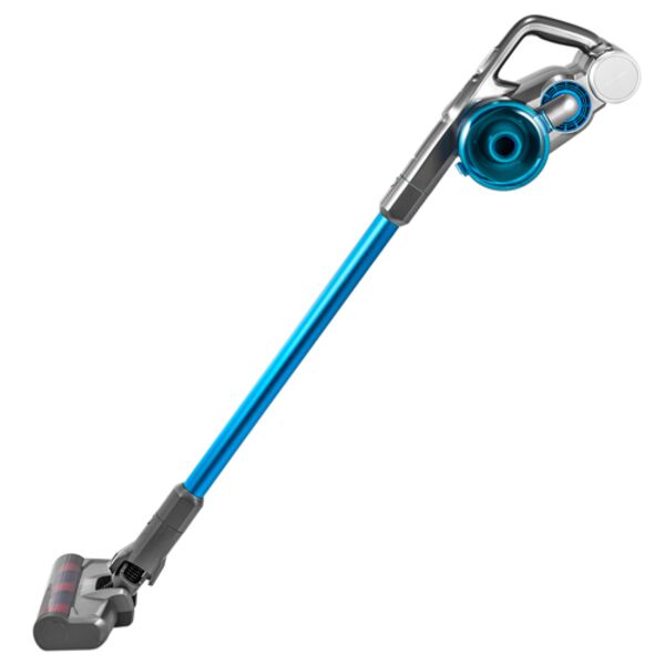 Дисплей с информацией об оставшемся заряде аккумулятора и режиме мощности. Запатентованная технология горизонтального циклона. Три режима мощности всасывания. Турбощётка против наматывания волос. Сменный аккумулятор. Мощность 500 Вт. Насадки: турбощетка, мини-турбощетка, насадка щелевая+щетка, насадка щетка.