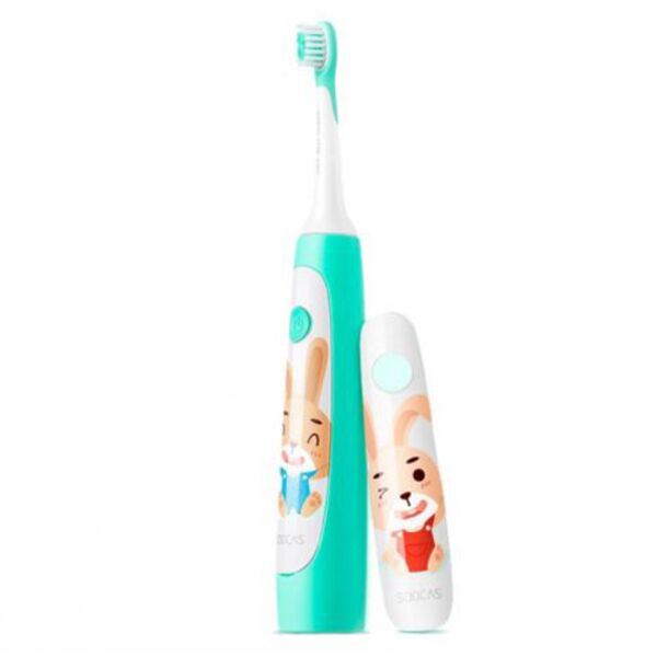 ПРИЧИНА УЦЕНКИ : акб держит час Электрическая щетка Soocas C1 - разработана специально для детей и относится к классу звуковых щеток с вибрирующей головкой, которая обладает оптимальным уровнем жесткости (имеет скругленные щетинки, которые не повреждают десна). Soocas C1 прививает навыки гигиены у ребенка в игровой форме: процесс борьбы с бактериями отображается на экране смартфона в виде занимательного мультфильма. Специальная программа-игра по мере очистки ротовой полости (от налета, остатков пищи, микробов) продвигает главного персонажа игры - кролика к финишу. Soocas C1 в автоматическом режиме информирует, если уход за ротовой полостью производится неправильно. Soocas C1 оснащена мощным аккумулятором емкостью 850 мАч, которого (при полном заряде) хватит приблизительно на 20 дней (при использовании не более двух раз в день по 2-3 минуты). Зарядить аккумулятор зубной щетки можно даже от павербанка, что очень удобно, если вы отправились с ребенком на отдых.