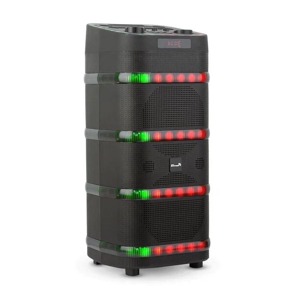 ПРИЧИНА УЦЕНКИ : ТРЕЩИНА НА КОРПУСЕ. Мощность: 800w pmpo, 80w rms. Поддержка USB-карт, SD-карт. Радио. AUX 3.5mm вход. 2 Динамика по 8 дюймов.