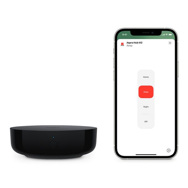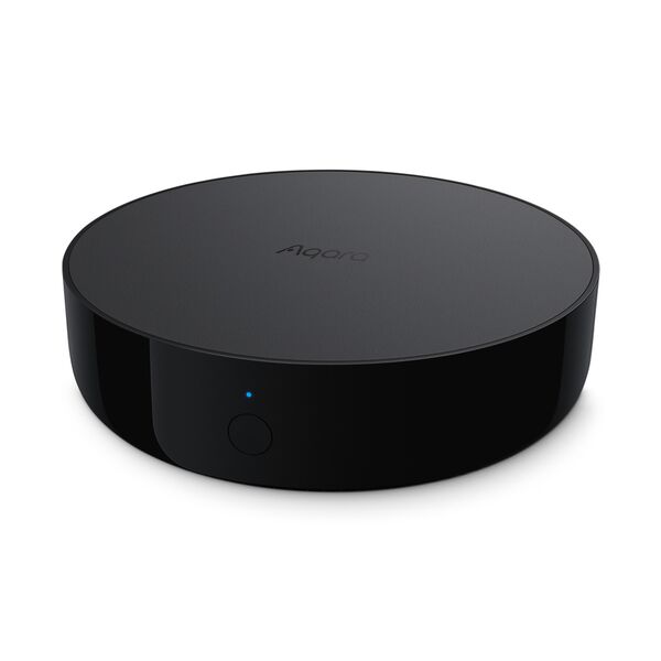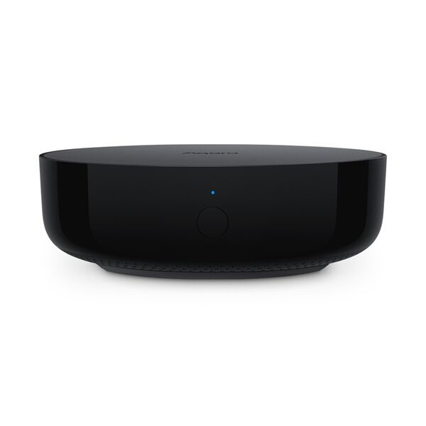 Центр умного дома, позволяющий управлять бытовой техникой через встроенный инфракрасный пульт с радиусом действия 360°, а также позволяющий подключить к себе до 128 устройств по протоколу Zigbee 3.0. В хабе присутствует динамик, который можно использовать в качестве сирены, беспроводного дверного звонка и для получения звуковых уведомлений. Хаб работает с Apple Home Kit и позволяет подключать устройства Aqara к голосовым ассистентам «Алиса» от Яндекс и «Маруся» от Mail. ru Group. Хаб имеет разъём RJ-45 для подключения к интернет через проводное соединение. За счёт этого обеспечивается стабильность работы, а также возможность использования хаба без Wi-Fi роутера.