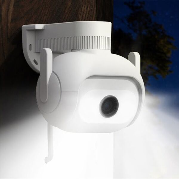 Уличная камера с углом поворота 360° по горизонтали и 110° по вертикали. 2К разрешение и цветная ночная съемка, функция сигнализации и оповещения. Степень защиты IP66. Диапазон рабочих температур от -30°С до +60°С. Подключение через LAN-соединение или Wi-Fi. Искусственный интеллект камеры может распознавать людей и автоматически отслеживать их перемещение.