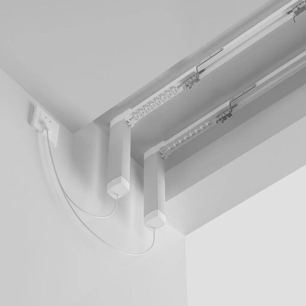 Профильный карниз в сборе совместимый с приводом Aqara (приводом не комплектуется). Раздвижка от центра. С концевыми блоками. Привод справа. Однорядный тип карниза. Грузоподъемность 50 кг.